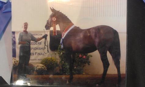 is an eight-year old registered Trakehner stallion by Tribute out of American Beauty by Graditz*E*. Graditz *E* goes back to the legendary Trakehner Show Jumper Abdullah*Pg*E*. Admiral was the last foal bred and born on the farm. As a two-year old Admiral was asked to jump the highest 4´ square oxer at the ATA inspection for stallion approval, which he cleared. The representative from the German Verband, Erhard Schulte, told me Admiral will be a Champion Hunter. Admiral nowadays is jumping 3´3" with ease. His attitude is laid back and well mannered but Admiral is not for a junior or beginner rider. A real eye candy guy in the show ring and his steady gaits Admiral would make an excellent Eq. Hunter and will live up to Herr Schulte's opinion. Look for Admiral at the Hunter Shows around Columbus!